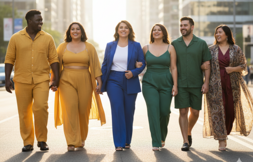 - เน้นเส้นแนวตั้ง: เลือก ชุดเซ็ทพลัสไซส์ ที่มีกางเกงทรงขากระบอกตรง หรือมีดีไซน์ที่มีกระดุม/ซิปในแนวตั้งตลอดลำตัว จะช่วยยืดช่วงตัวให้ดูสูงและเพรียวขึ้น