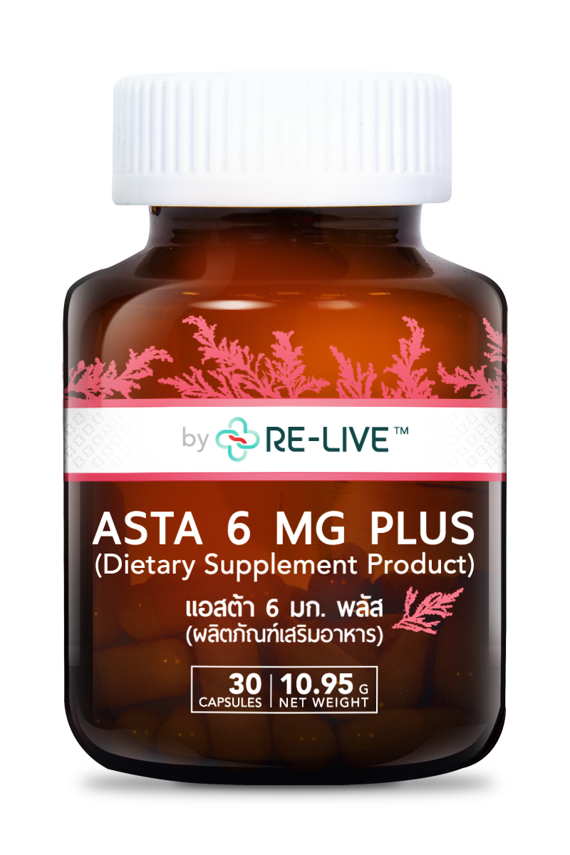 ASTa 6 mg. ช่วยลดเลือนริ้วรอย ไม่ทำให้แก่ก่อนวัย , และยังลดอาการอักเสบของข้อเข่า ด้วยสารสกัดจากสาหร่ายแดง