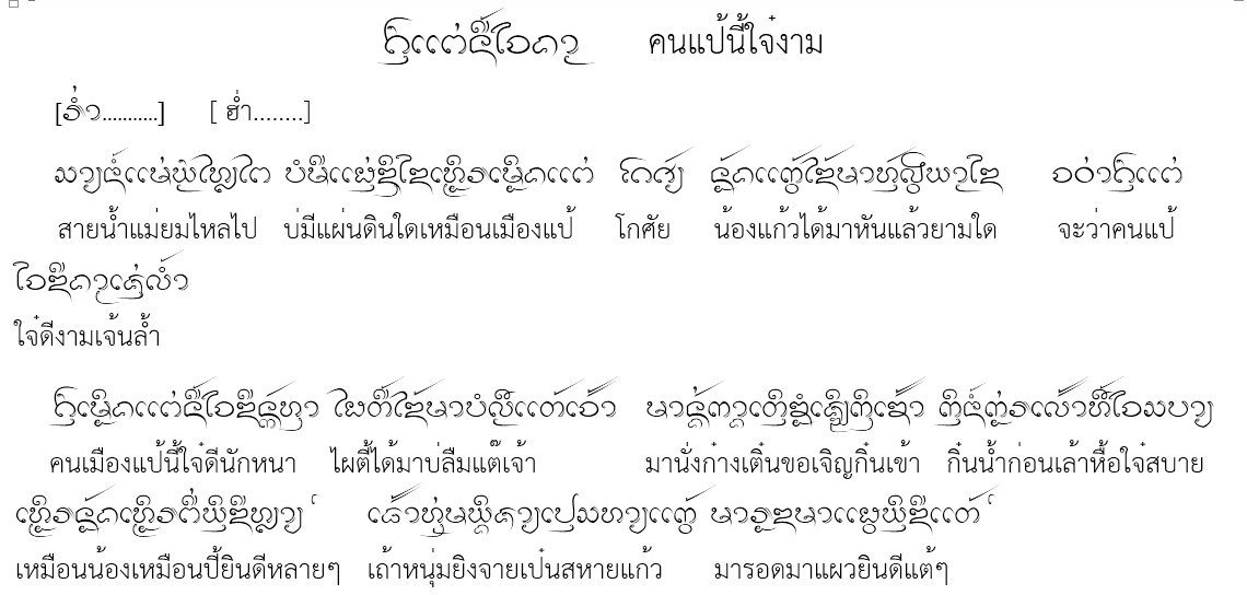 แพร่ คนล้านนาออกเสียง. แป้ ฟังเพลงของเมืองแป้มานาน เพลงนี้ล่ะครับสำเนียงคนล้านนาตะวันออกแท้ๆ (ไม่คล้ายสำเนียงเชียงใหม่-ลำพูน ฯลฯ....ล้านนาตะวันตก) เสียงสำเนียงชาวแพร่....ของคุณวัลลิกา ผมเรียงฉันทลักษณ์ไม่น่าจะถูก ฟังคล้ายซอ....ฮ่ำ ผสมดนตรีสะล้อและซึง ฯลฯ จึงขอเรียงบทกวีเป็นวรรคๆ ....ผิดพลาดเชิญชี้แนะครับ. https://youtu.be/es8aA_LyubY