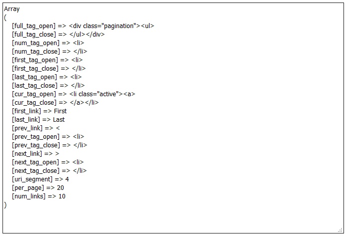 echo '</pre>';ผลลัพธ์ที่ได้ จะเหมือนกับค่าใน application/config/database.php
