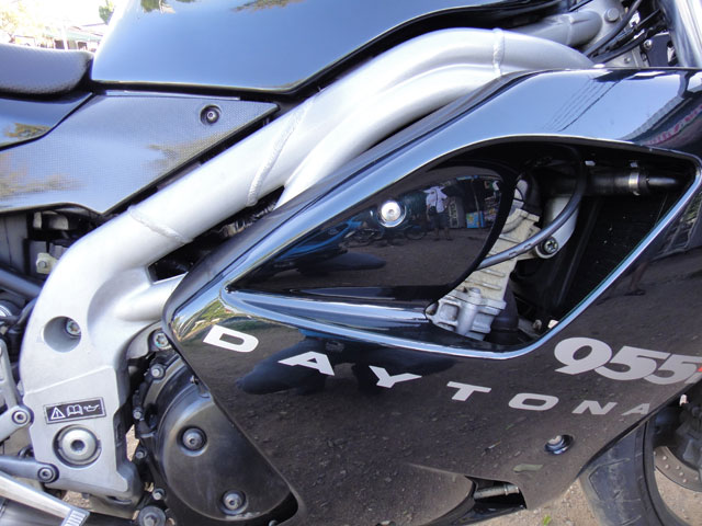 Triumph Daytona 955i ปรากฎโฉมครั้งแรกในชื่อไลน์ "Daytona"ระหว่างปี 1999 - 2006 Daytona 955iได้ถูกวางเครื่องใหม่เป็นเครื่อง3สูบที่เป็นเอกลักษณ์ของTriumphที่เอามาจากบริษัท Lotus(อ่านไม่ผิดหรอกLotusรถsportสัญชาติอังกฤษอีกแหละ)เอามาประยุกต์ใช้กับ Triumph Daytona 955i...... 955iได้รับการต่อยอดจากT595ด้วยการเพิ่มจำนวนCCให้มีแรงม้าเพิ่มขึ้นเป็น149 แรงม้า !! ส่วนT595ก็112แรงม้าตัวแฟรริ่งก็ถูกออกแบบใหม่โดย Gareth Davies and Rod Scivyerให้เหมาะกับขนาดเครื่อง3สูบขนาด955CCที่จัดทำโดยโรงงานLotusถ้าดูให้ดีๆคล้ายๆBlackbirdของHondaเลย....เห็นได้ชัดว่าDaytona955iออกแบบเผื่อสำหรับTouringเอาใจนักขี่ที่เป็แฟนพันธุ์แท้ Triumph...เสียดาย.. พอปี 2006ปิดไลน์Daytona955iแล้วเพราะTriumphต้องการทุ่มเทไปกับDaytona675ตัวปัจจุบันดีกว่า