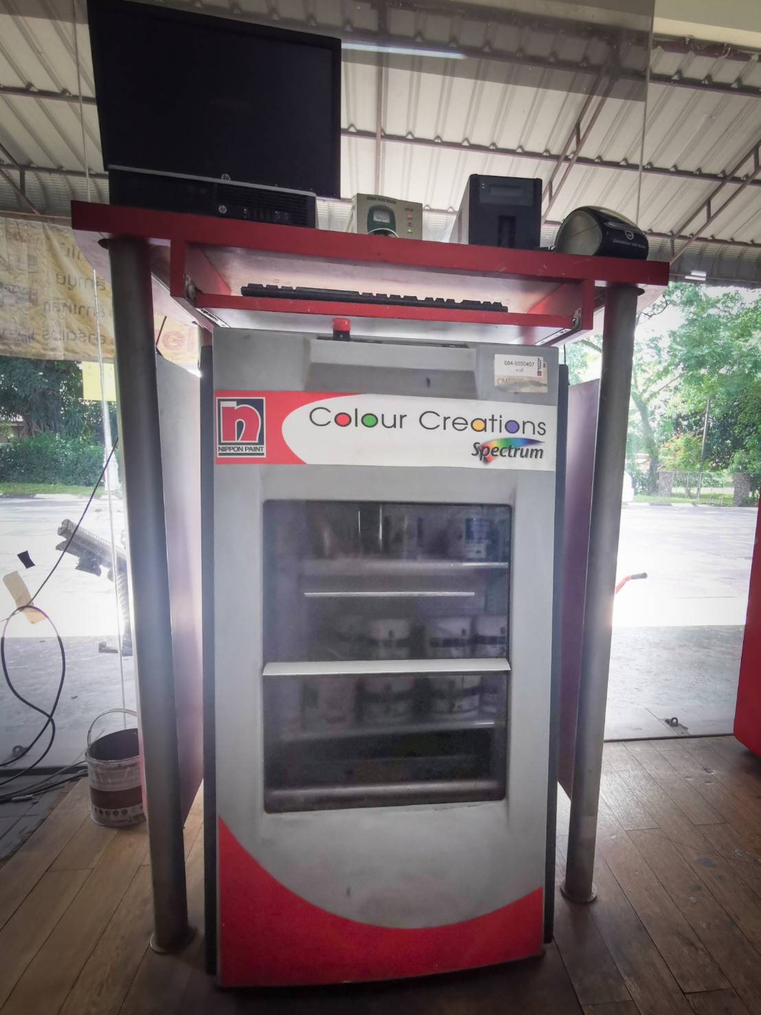 1. ผสมสีน้ำทาอาคาร สีน้ำมันทาไม้ เหล็ก ได้มากกว่า 20,000 เฉดสี 2. ครบเซ็ท ทั้ง เครื่องหยอดผสมสี + เครื่องเขย่าถังสี (ราคามือ 1 500,000 บาท) คอมพิวเตอร์ + จอคอม +คีย์บอร์ด + เม้าส์ + เครื่อง print ฉลาก + เครื่องสำรองไฟ 2 ชุด (มูลค่า 30,000 บาท) 3. โปรแกรมผสมสี ของ นิปปอนเพนท์ + แคทตาล็อคสีแบบละเอียด 4. ตู้เก็บแคตตาล็อค เป็นตู้โชว์ โลโก้ นิปปอนในตัว 5. ป้ายศูนย์ผสมสีนิปปอน แขวนภายในร้าน