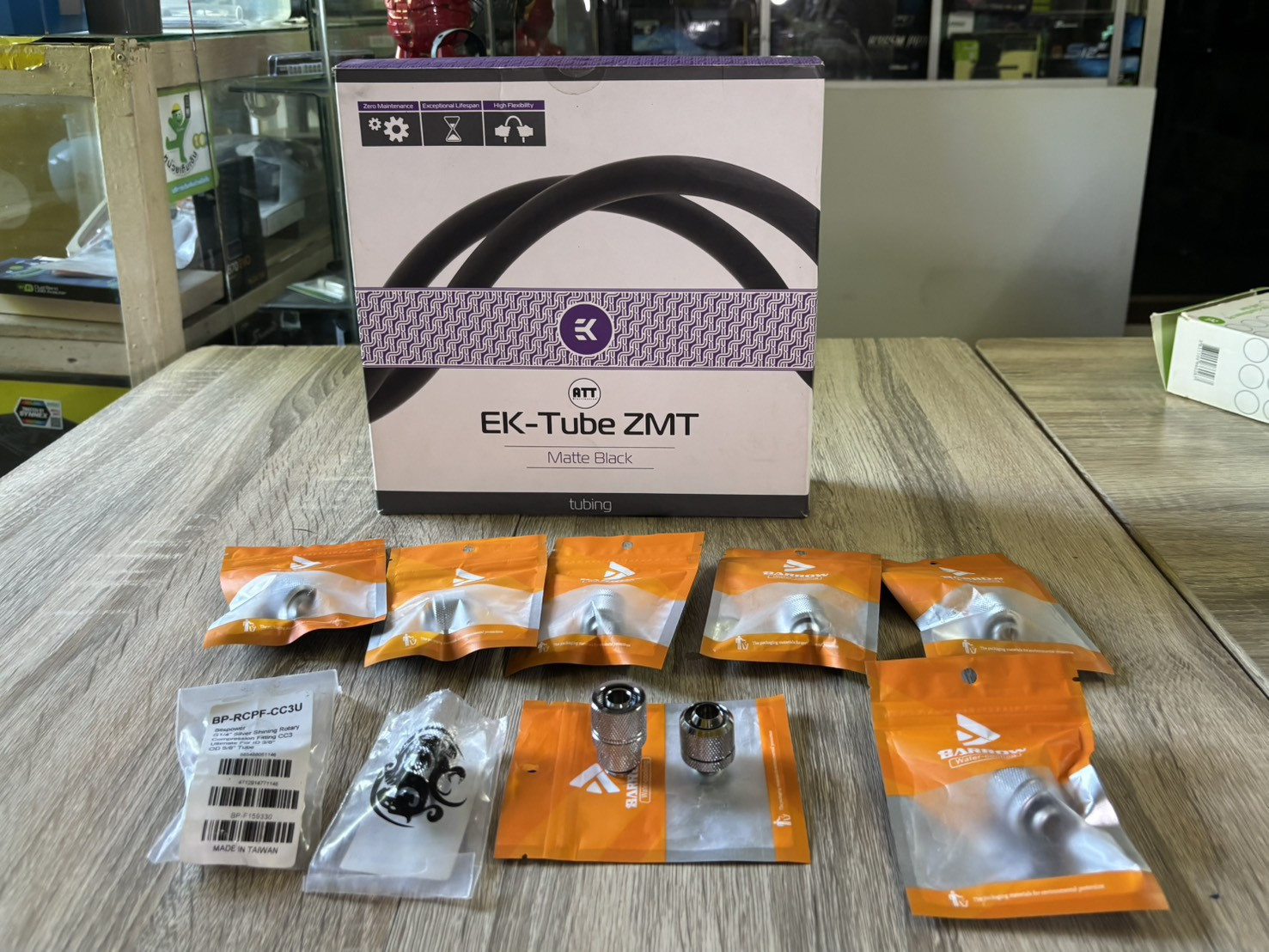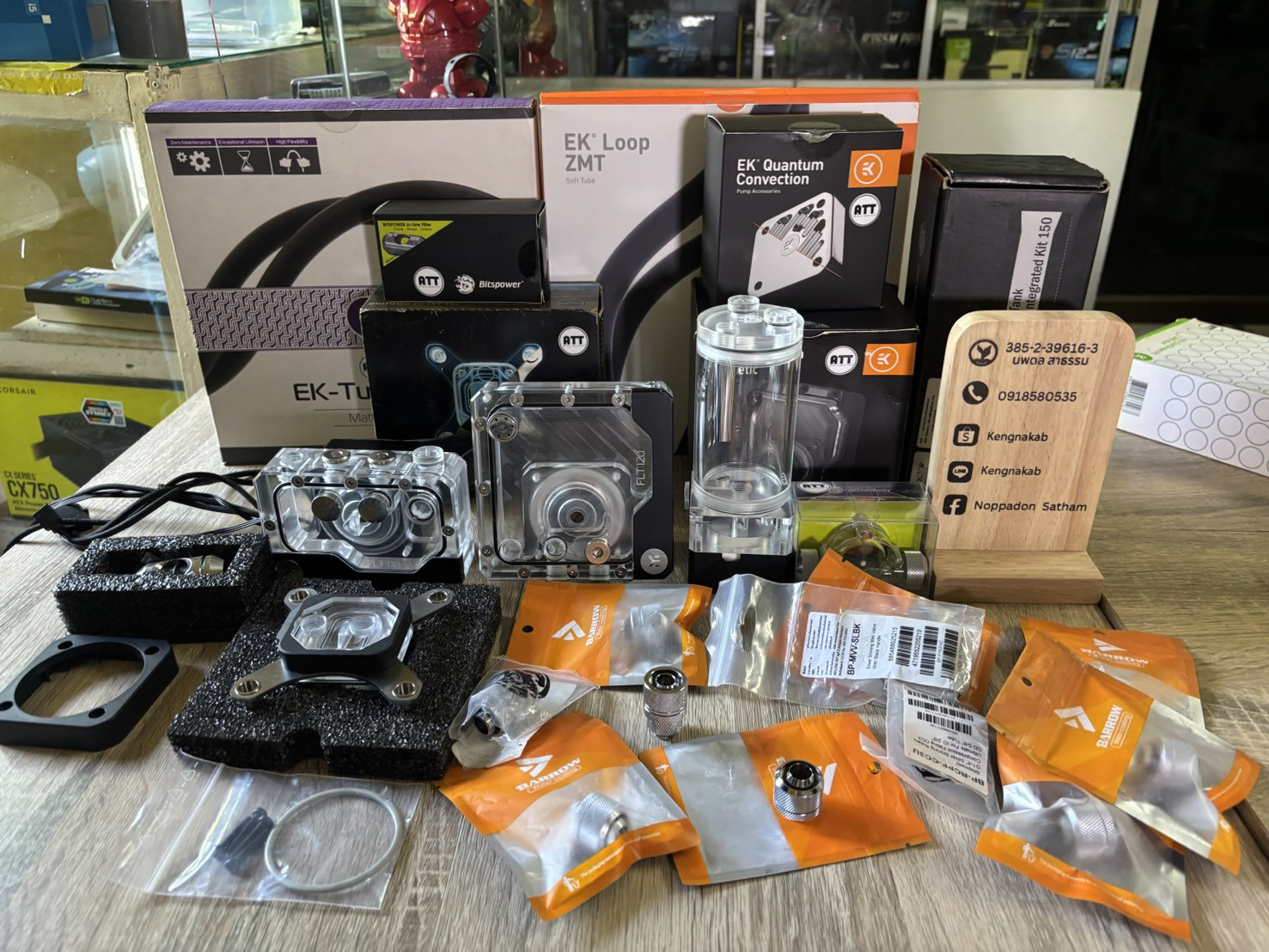 ชุดปั้มน้ำ EK-Quantum Kinetic TBE 200 D5 PWM D-RGB - Plexi 1.EK-Quantum Kinetic TBE 200 D5 PWM D-RGB - Plexi 2.EK-RES X3 TUBE 250 204.MM ถังพักน้ำยาว 3.EK-RES X3 Holder 60.MM 4.วาวน้ำ 5.ตัวลดแรงดัน สภาพยังสวยใส มีรอยบ้างตามการใช้งาน ล้างทำความสะอาดแล้ว อุปกรณ์ ปั้มน้ำ มีแต่ตัวไม่มีกล่อง ราคาเพียง ขายแล้ว