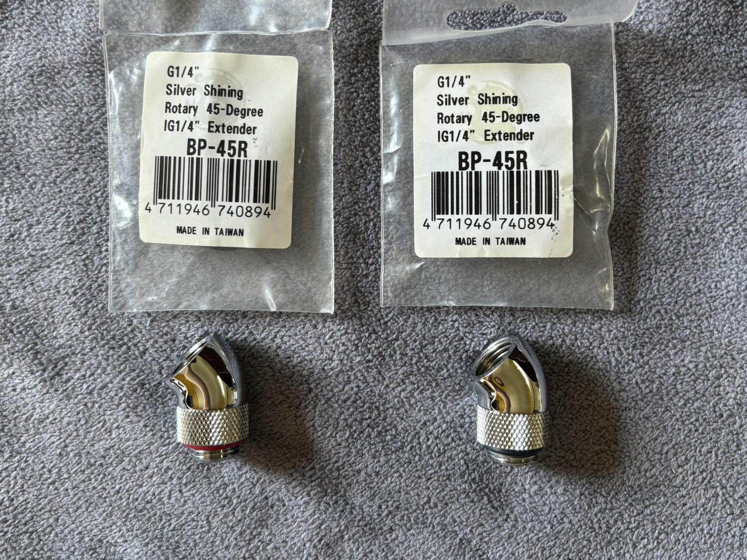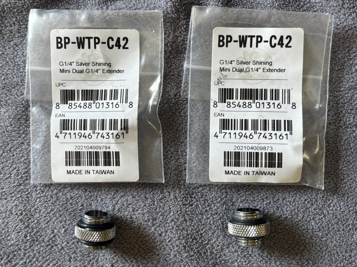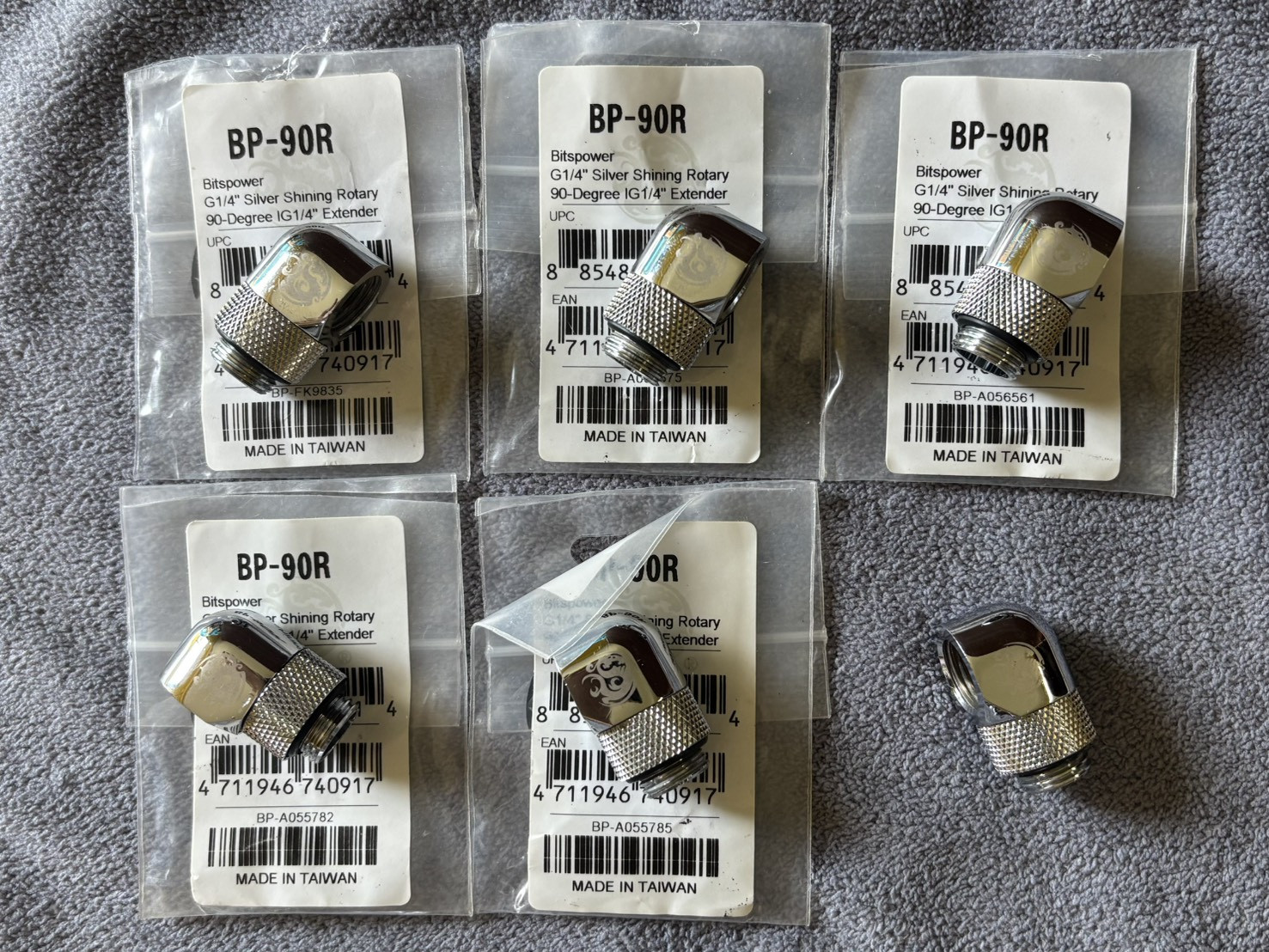 Fitting Bitspower G1/4" Silver Shining Enhance Multi-Link For OD 14MM สินค้ามือ 2 สภาพสวย ใช้งานไม่ถึง 10 วัน ล้างทำความสะอาดให้แล้วพร้อมใช้งาน มีทั้งหมด 10 ชิ้น มียางโอริงสำรอง 4 วง ราคาเพียง ขายแล้วครับ