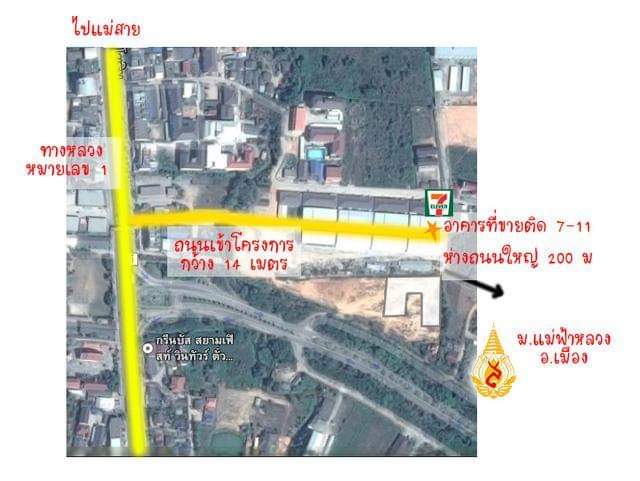 ทำเลทอง ใกล้มหาวิทยาลัยแม่ฟ้าหลวงมาก(ติดทางเข้า) อยู่ติดหัวมุมร้าน 7-11
