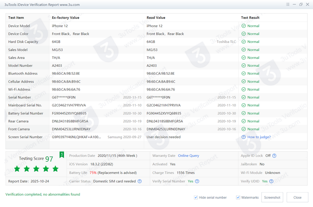 สแกนหน้าได้ แบต74% ไม่ติดไอคราว ขอบกล้องสีลอกดูได้ตามรูปไม่มีผลต่อการใช้งาน