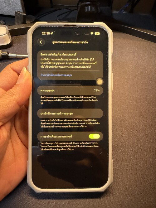 เครื่องเดิม สภาพดี ใช้งานเอง ขายเอง สุขภาพ แบตเตอรี่ 78% ยังเก็บไฟได้ดี ไม่เคยแกะไม่เคยซ่อม สแกนหน้าดีจอดีปกติ