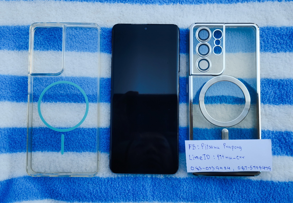 Samsung S21 Ultra 12/128Gb สีดํา + เคส 2 ชิ้น มีรอยสีหลุด+เคสกัดตามขอบ ใช้งานปกติทุกอย่าง จอไม่ไบร์ทไม่เบริน์ไม่เส้นครับ ติดฟิล์มหน้าหลังไว้แล้ว