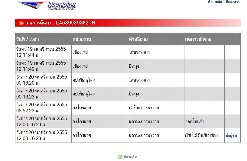 ออเดอร์: คุณ คำรณ 081-972-xxxx (จ.สุโขทัย) สั่ง: กรงชูโม้ (สแลท3 แผ่น + ล้อ) จำนวน : 1 ใบ สีตะกั่ว สถานะ : ชำระเงินครบแล้ว/ส่งแล้วกำหนดส่ง : ส่งแล้ว 19 พฤศจิกายน 2555 เงื่อนไขการส่ง : โลจิสต์โพสต์ไปรษณีย์ไทย เลขที่ LA039939862TH กดที่นี่เพื่อเช็คสถานะการส่ง ไปลงที่ อ.กงไกรลาศ จ.สุโขทัย (ถึงปลายทางประมาณ วันที่ 20 พ.ย. ช่วงเย็น) ขอขอบคุณ คุณ คำรณมากที่อุดหนุนค่ะ