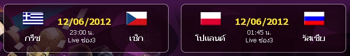 กรีซ พบ สาธารณรัฐเช็ก 23.00 น. โปแลนด์ พบ รัสเซีย 01.45 น.