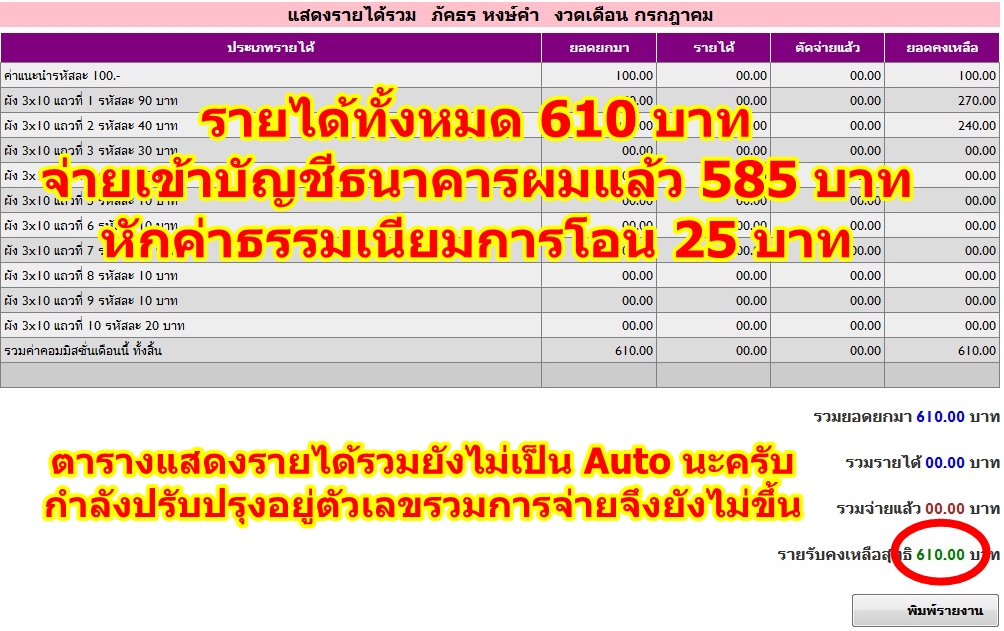 หลักฐานการจ่ายเงิน 585 บาทเข้าบัญชีธนาคารของผม