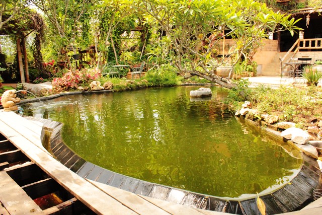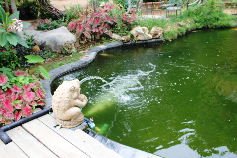 งานแก้น้ำเขียวบนภูใจใสกับเพื่อน หลังจากแก้ไขระบบกรองแล้ว ก็ได้บ่อปลาที่น้ำใสเหมือนในรูปครับ