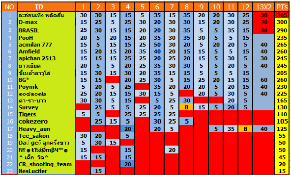 อันดับ 1 ได้ 305 2 300 แน่นอแล้วครับ  อันดับสามถ้า Pooh เข้า 2 คู่จะคว้าที่ 3 ไป เดี่ยวจะตรวจคะแนนอีกครั้งนะครับ จะประกาศอย่างเป็นทางการอีกที จะตรวจดูแค่ 1-3 พอ ใครที่คิดว่าผมคิดผิด บอกได้นะครับ บางที่อันดับอาจเปลี่ยน ผมอาจคิดผิด
