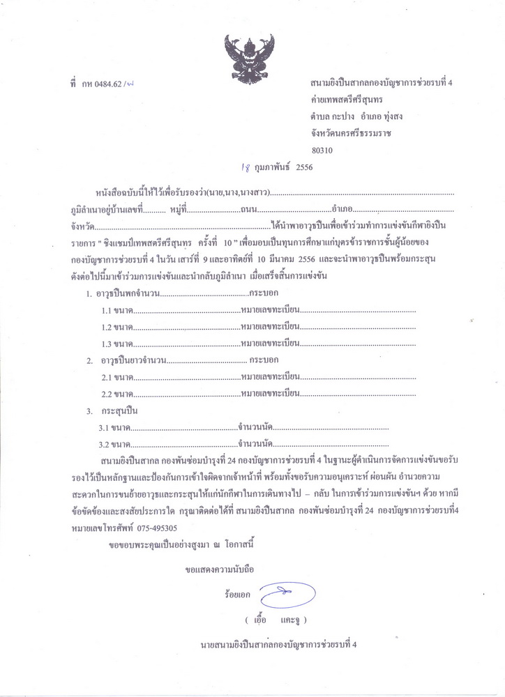 อิอิ ...เดียวอาทิตย์นี้ จะเอา ปืนไปตั้ง ศูนย์จี้ 7 เมตร ครับ...จะไปยิง 7 เมตร ที่นครฯ ไปดูสถิติ มาแล้ว...ครั้งก่อนๆ ยิงกันเต็มไม่ต่ำ 50 ชุด..สักคน...ถ้าไปยิง 10 - 15 เมตรกลัว ชุดรองเราจะสู้เขาไม่ไหว...ขอเอาชัวว์สำหรับตัวเอง เพื่อลุ้นดีกว่า 7 เมตร มี 4 ถ้วย(มีลุ้น) รายการอื่น 3 ถ้วย... นักกีฬาลงทะเบียน TopGunยิงล่วงหน้า 50 กว่าคน ขอเป็น 4/52 = 13 คน ได้ 1 ถ้วย หละ งานนี้....  30 ชุด เลิก...อิอิ