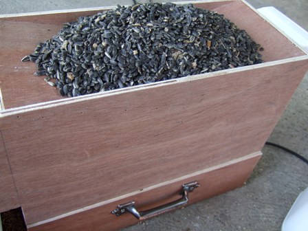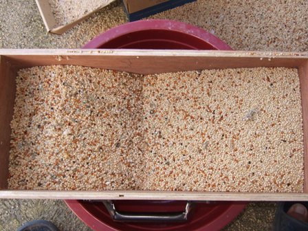 ]ลองใช้แล้วครับพี่...ใช้ได้ครับ พรุ่งนี้จะไปเอากากอาหารที่สะสมไว้มาใส่ให้หมดเลย... ..อาทิตย์หน้าจะเดินสายการผลิตละพี่  วนรอรอ ว่าแต่ใช้เป่ามิลเลต และเมล็ดทานตะวันเลยป่าว หรือใช้เป่ามิลเลตอย่างเดียวน่ะท๊อป  ยังไม่ได้เป่าทานตะวันเลยพี่พรุ่งนี้ก่อน..เอาที่สะสมมาเป่าให้หมด แต่ตัวนี้ปรับแรงลมได้ในระดับนึ่งพี่...ถ้าเราผสมอาหารน้ำหนักของอาหารแต่ละอย่างไม่เท่ากัน..ตอนเป็นกากแล้วเวลาเป่าอาจไม่ละเอียดพอ..เดียวขอลองพรุ่งนี้ให้ครบก่อนนะพี่.. อดใจรอไม่ไหว...เลยเอาไปลองกับฮวยมั้ว เมล็ดทานตะวันมา ไม่ได้เรื่องเลยสวยแต่รูป ต้องปรับปรุงอีก...องศาการไหลของอาหารก็ไหลช้า...เหนื่อยใจจริงพรุ่งนี้หาวิธีแก้ไขใหม่  ???เช้าวันเสาร์รีบลุกมาปรับปรุงเครื่องแยกกากเพราะนอนไม่หลับ..เซ็งจิต ตอนนี้เข้าที่แล้ว...มิลเล็ตออกมาดี...ทานตะวันกับฮวยมั้วไม่ได้เรื่อง...เลยทำลิ้นปรับเลื่อนสำหรับเลือกใช้งานให้เหมาะสมกับอาหารนกอาจต้องเพิ่มแรงของลมเพื่อให้การทำงานดีขึ้น ;Dภาพมิลเล็ตที่ทำการแยกแล้วซ้ายมือ 80 % ขวามือสภาพ 90% ;Dเมล็ดทานตะวันส่วนใหญ่ที่เราเอามาให้นกจะมีความชื้นสูง ผลที่ตามมาคือมีแมลง ก็เลยเอามาเป่าแล้วตากแดด ให้มีความชื้นน้อยลงและไล่แมลงด้วย