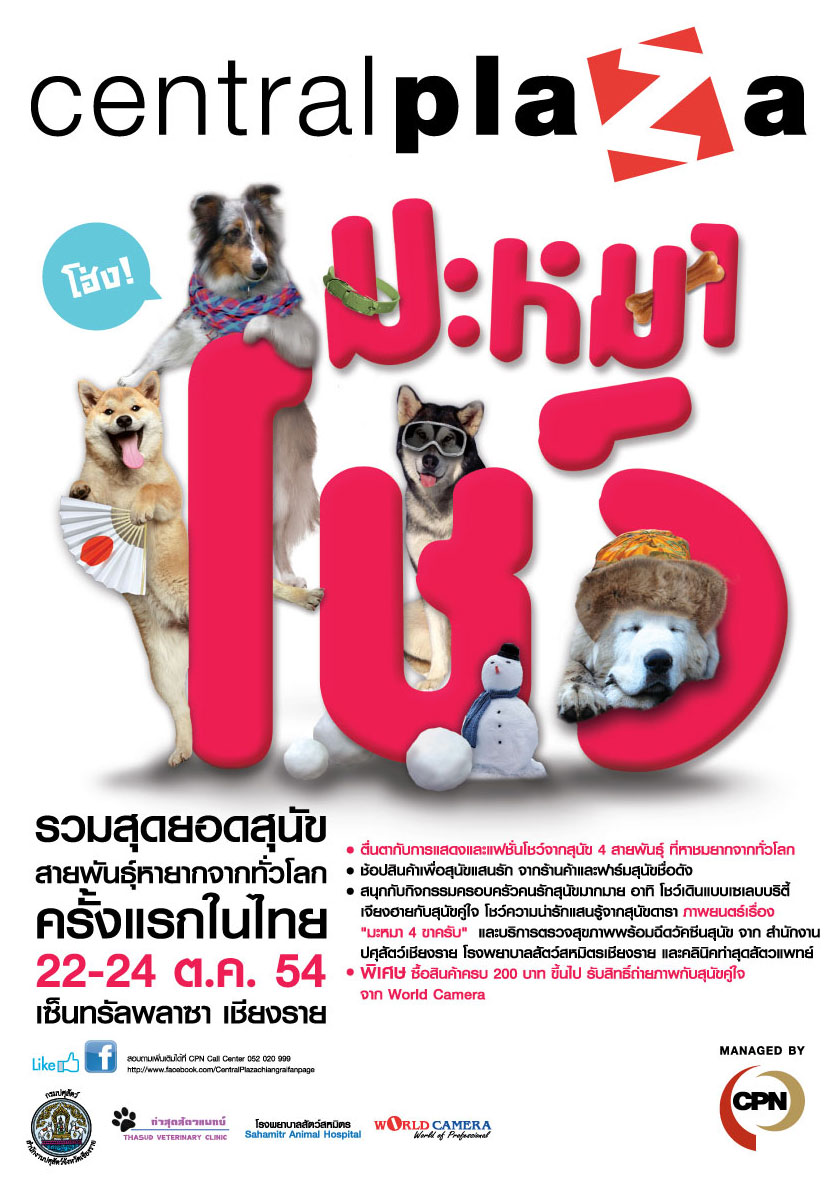 White Tibetan Mastiff ไวท์ ทิเบตัน มาสทิฟฟ์ / Alaskan Malamute อลาสกา มาลามิว / Shiba Inu ชิบะ อินุ / Collie Blue Merle คอลลี่บลูเบอร์ สุนัข 4 สายพันธุ์หายากจากทั่วโลก / ช้อปสินค้าเพื่อสุนัขแสนรัก / การแสดงโชว์และเดินแบบ / ตรวจสุขภาพพร้อมฉีดวัคซีน จากสำนักงานปศุสัตว์เชียงราย โรงพยาบาลสัตว์สหมิตร คลินิกท่าสุดสัตวแพทย์ 22-24 ต.ค. นี้ เซ็นทรัลพลาซา เชียงราย