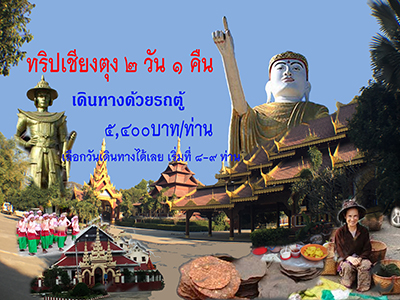 โปรแกรมเที่ยวเชียงตุง 2 วัน 1 คืน เดินทางด้วยรถตู้ ราคารวม ค่ารถ+คนขับ+น้ำมัน+ไกด์ ค่าธรรมเนียมผ่านแดน ค่าที่พัก 1 คืน (โรงแรมสามดาวหรือเทียบเท่า) ค่าอาหาร 4 มื้อ ตามโปรแกรม รายละเอียด คลิก https://bit.ly/2JNftSV