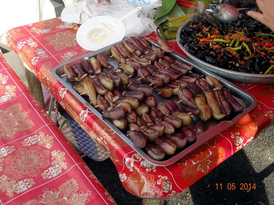 ................แม่ค้าบอกว่า ชื่อ .....หม้อข้าวแกงลิง.... .........ดูแล้วเหมือนเอาข้าวยัดเข้าไปในกระเปาะหม้อข้าวหม้อแกงลิง ............. ...................ส่วนรสชาติเป็นไงงั้นไม่ทราบ ไม่ได้ลองซื้อมาชิมดู....... ............ไม่รู้นึกอะไรอยู่ ปกติจะหากินอาหารแปลกๆต่างถิ่น .......... .......................เค้ากินได้เราก็ต้องกินได้ ผมกินทุกอย่างยกเว้นอาหารที่ไม่ได้ปรุงสุก..........