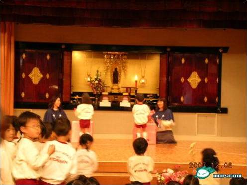 อิทธิพลของศาสนาพุทธ อนุบาลญี่ปุ่นจะตั้งอยู่รอบวัด นอกจากนั้น เจ้าอาวาสยังควบตำแหน่งผู้อำนวยการอนุบาลด้วย ลักษณะนี้มีอยู่ทั่วไปทั้งในชนบทและเมืองใหญ่เช่นโตเกียว เด็กๆ ก็ชอบไปเล่นซ่อนหาในสุสานบริเวณวัด กล่าวได้ว่าวิ่งไปมาระหว่างเส้นตายและเส้นเป็น ทุกเดือนเด็กต้องไปฟังเทศน์ในวัด 1 ครั้ง และไหว้พระในวันสำคัญ ก่อนจบการศึกษา เด็กต้องไปถวายดอกไม้และบนบานในวัดผ(ลองมองกลับกันคุณพอลูกคุณไปวัดล่าสุดเมื่อไหร่คะ) มีต่อคะ