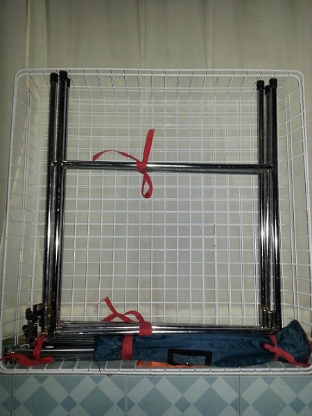 2. โต๊ะโครงเหล็กถอดได้ขนาด 1.5m พร้อมตระแกงตาช่ายใส่ของตามภาพ เหมาะสำหรับใส่ผ้ากองขายหรือ ใส่ผลไม้กองขายก็ได้ แข็งแรงทนทาน รองรับน้ำหนักได้มาก แถม!กระเป๋าใส่โครงเหล็กยาวด้วยครับผมซื้อมาทั้งชุด 1,250 ขายยกชุดไม่แยกขายนะครับ ทั้งชุดขายเพียง 800 บาท